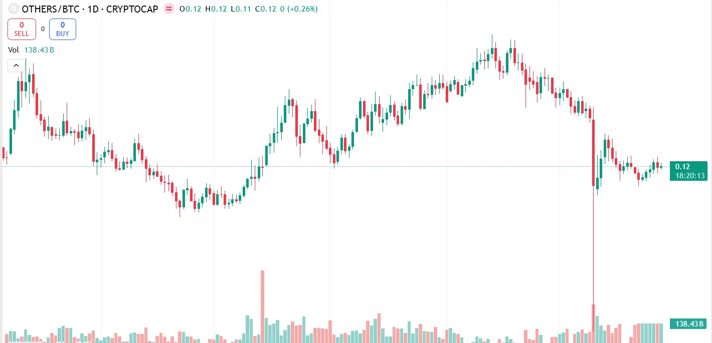 على مدار هذه الدورة، كانت العملات البديلة أقل أداءً. ظهرت فقط انفجارات قصيرة من المكاسب، مثل الارتفاع السبع مرات لـ XRP أو الزخم القصير الأمد بين الرموز المتعلقة بالذكاء الاصطناعي. خلال معظم عامي 2024 و2025، ظل سوق العملات البديلة الأوسع، خاصةً خارج العشرة الأوائل—في مرحلة هبوط.