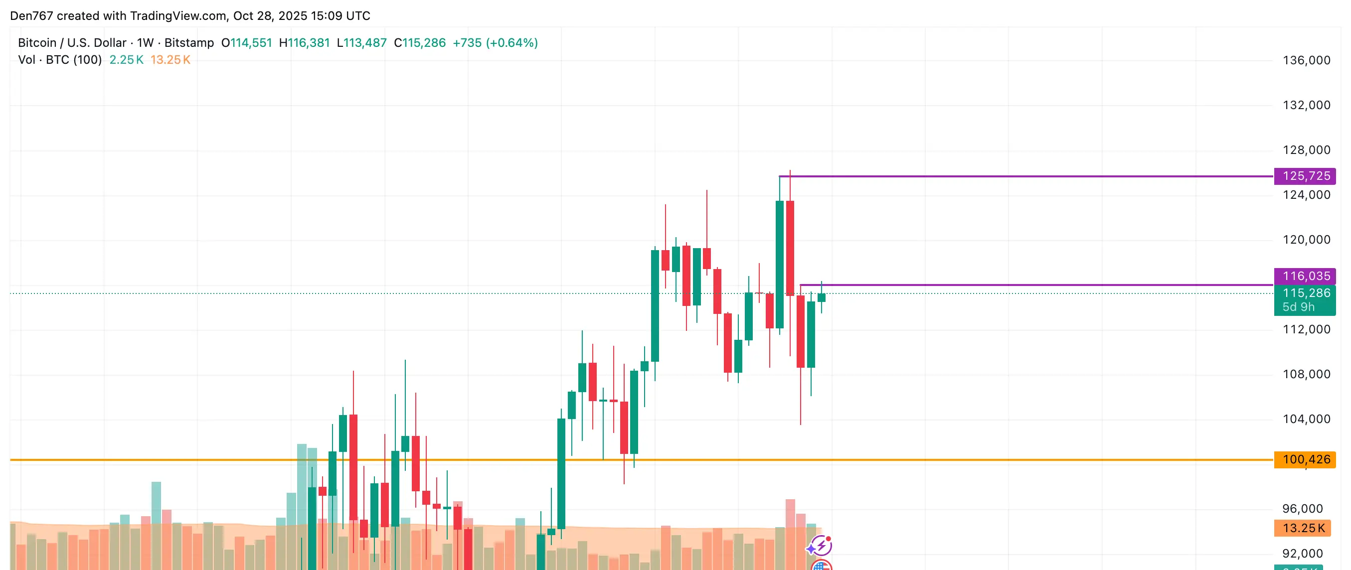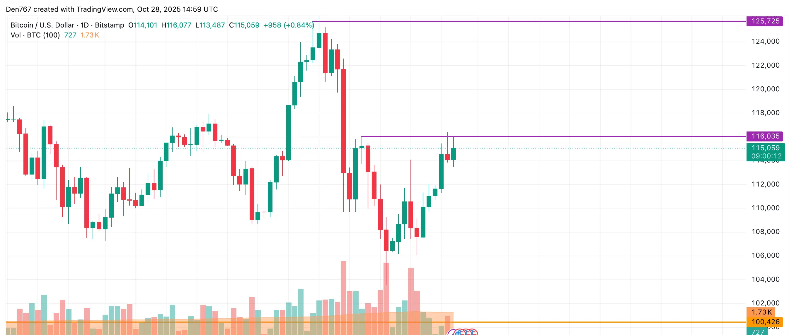 على المدى الطويل، ارتفع سعر العملة المشفرة الرئيسية مرة أخرى من مقاومة 116,035 دولار.