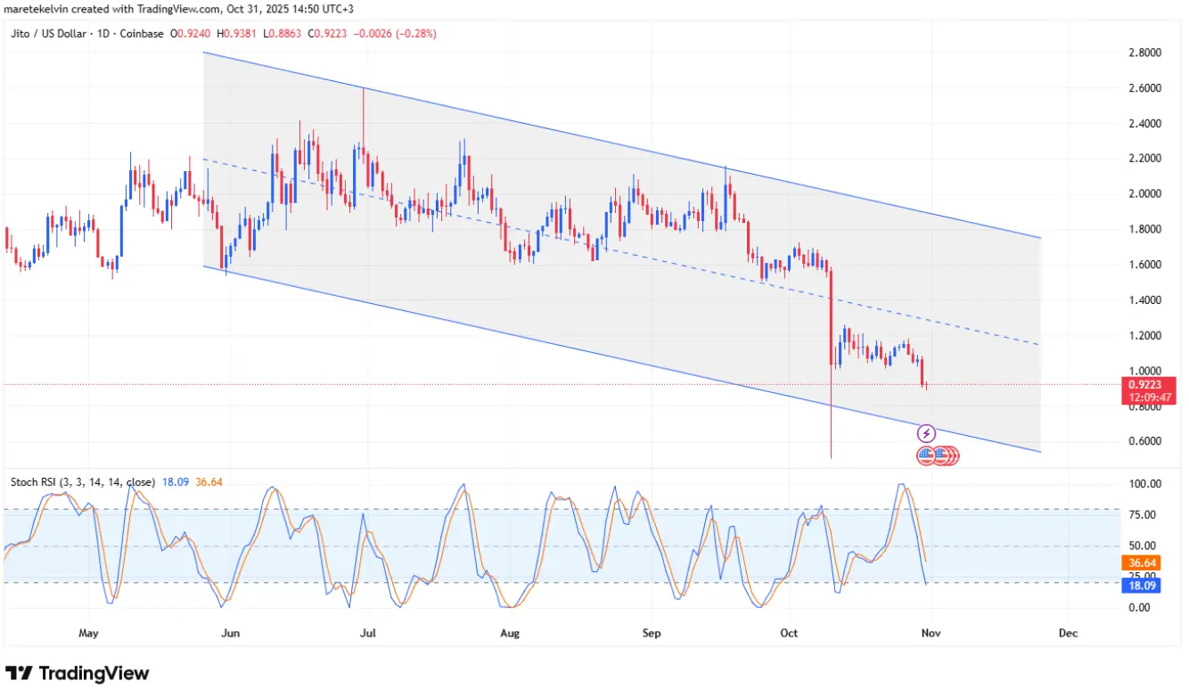 Bien que les perspectives à court terme de Jito restent très incertaines, les données on-chain et les signaux techniques montrent une possibilité de formation d'un point de retournement.