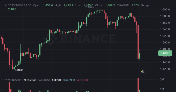 為替市場への影響は即座に現れました:暗号ドルは、USDTやUSDCなどのステーブルコインを通じて、リアルタイムで自由市場のドルのレートを反映していますが、今夜は大幅に下落しました。金曜日に$1,600に達した後、週末の終わりには$1,468前後で取引されています。これは、P2Pプラットフォームや地元の取引所のデータによるものです。