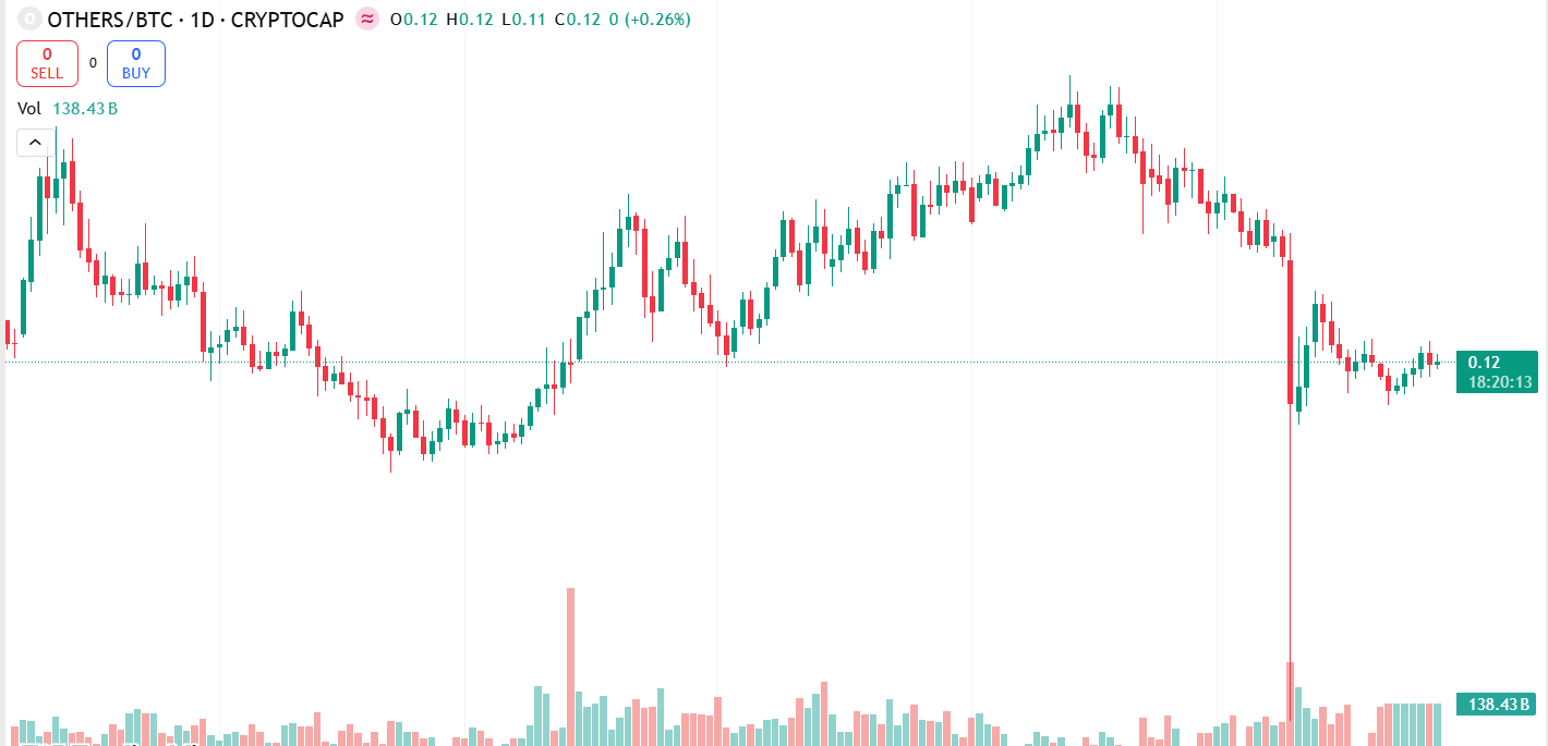 このサイクルを通じて、アルトコインは低迷しています。XRPの7倍の上昇やAI関連トークンの短命なモメンタムなど、一時的な利益のバーストが見られるだけでした。2024年と2025年のほとんどの期間、より広範なアルトコイン市場、特にトップ10を超えたものは、ベアフェーズに留まっています。