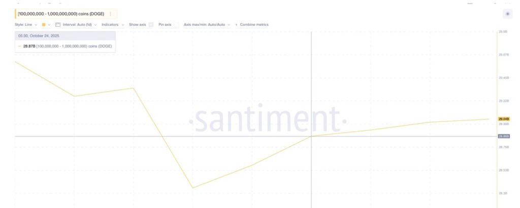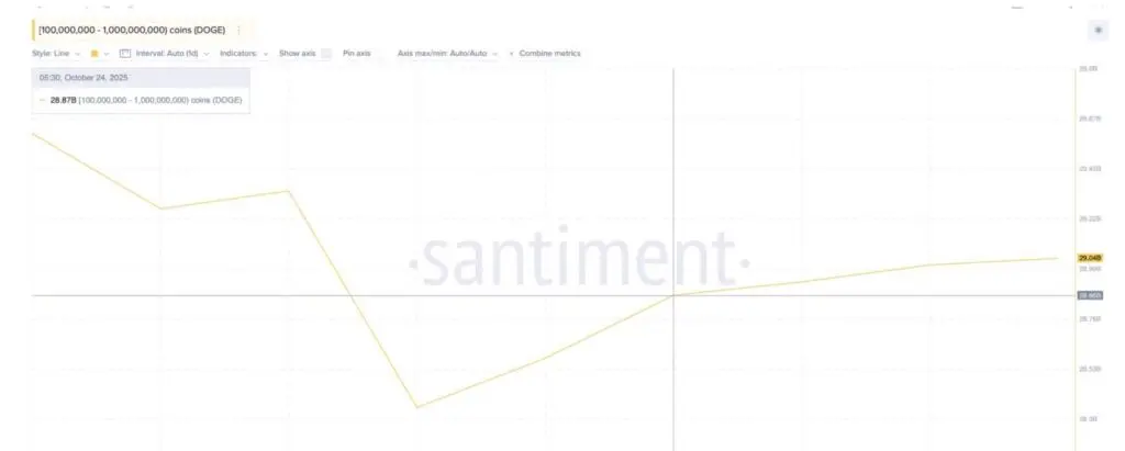 魅力を高めるために、Dogecoinのクジラたちが静かに蓄積を始めたようです。過去48時間で、1億から10億DOGEの残高を持つ保有者が、保有量を288.7億から290.4億DOGEに増やしました。