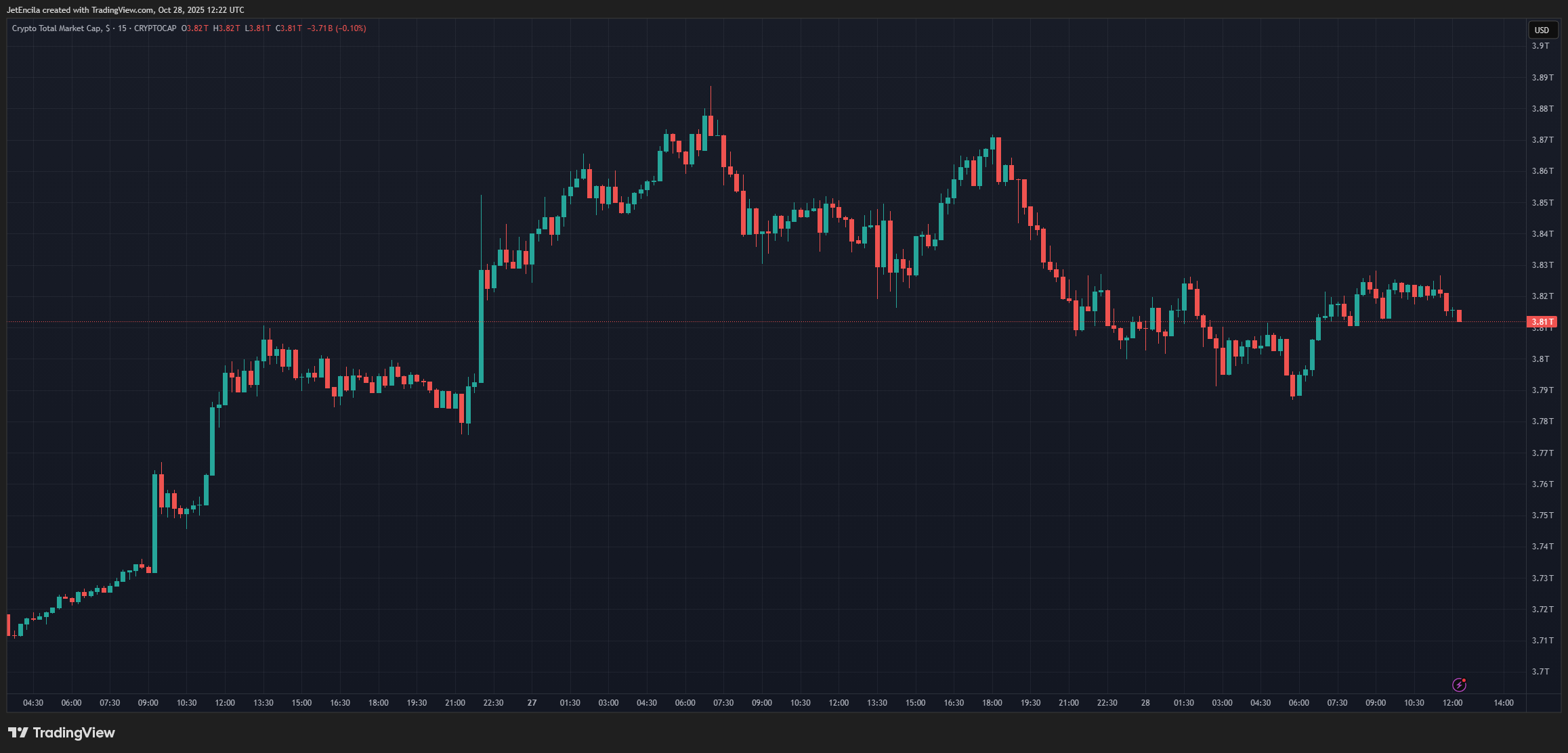 本日現在、暗号通貨の時価総額は3.81兆ドルとなっています。チャート:TradingView