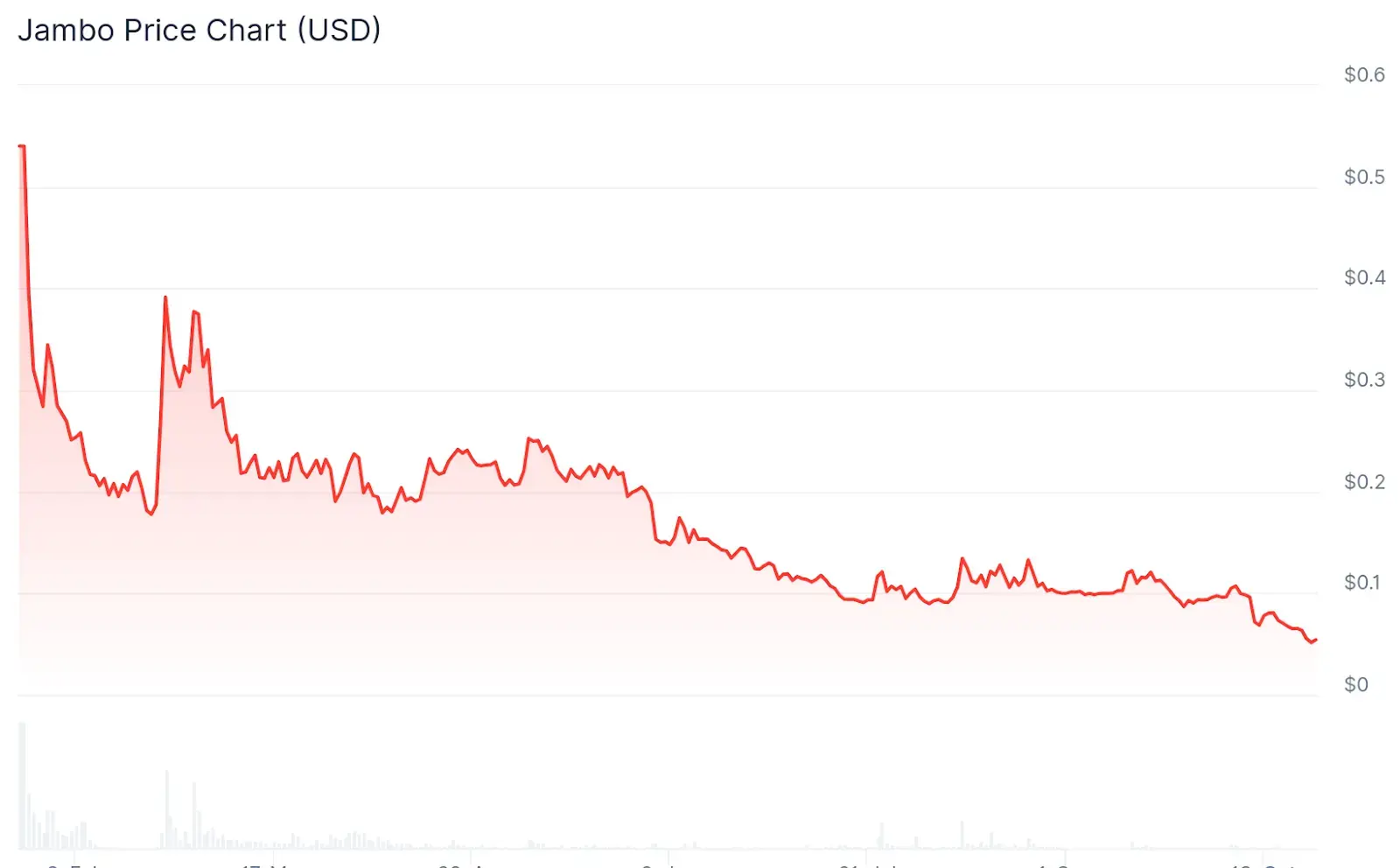 Представленный как нативный токен, который “связывает экосистему Jambo”, токен J потерял более 94% своей стоимости с момента запуска в феврале, согласно данным платформы.