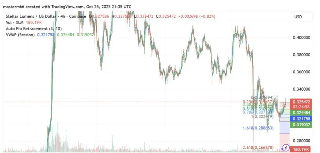 Последнее восстановление XLM на уровне $0.302 совпало с зонами поддержки на уровнях коррекции Фибоначчи 0.618 и 0.786, которые находятся в диапазоне от $0.316 до $0.307. В настоящее время VWAP (Объемно-взвешенная средняя цена) составляет $0.3217. Это указывает на то, что цена XLM стабилизируется выше уровней справедливой стоимости, где покупатели начинают возвращаться. Если цена сможет закрыться выше $0.325, это будет сигнализировать о прорыве из зоны среднего диапазона. Кроме того, пребывание выше VWAP указывает на повышенную уверенность со стороны дневных трейдеров. Если эта тенденция продолжится, то цели по росту цен на основе расширений Фибоначчи находятся в диапазоне от $0.36 до $0.37 - в соответствии с прогнозами аналитиков.