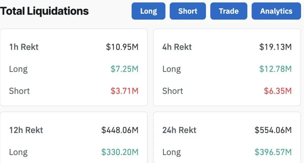 В дополнение к макроэкономическим факторам, крипторынок также столкнулся с масштабной волной ликвидации длинных позиций. Согласно данным CoinGlass, за последние 24 часа было ликвидировано более $567 миллионов (IDR на сумму 9.4 триллиона) криптоактивов, из которых $409 миллионов (IDR на сумму 6.8 триллиона) пришло от трейдеров, которые занимали длинные позиции. Этот всплеск ликвидации указывает на то, что рынок испытывает давление на длинные позиции, когда длинные позиции вынуждены закрываться в условиях резкого падения цен.