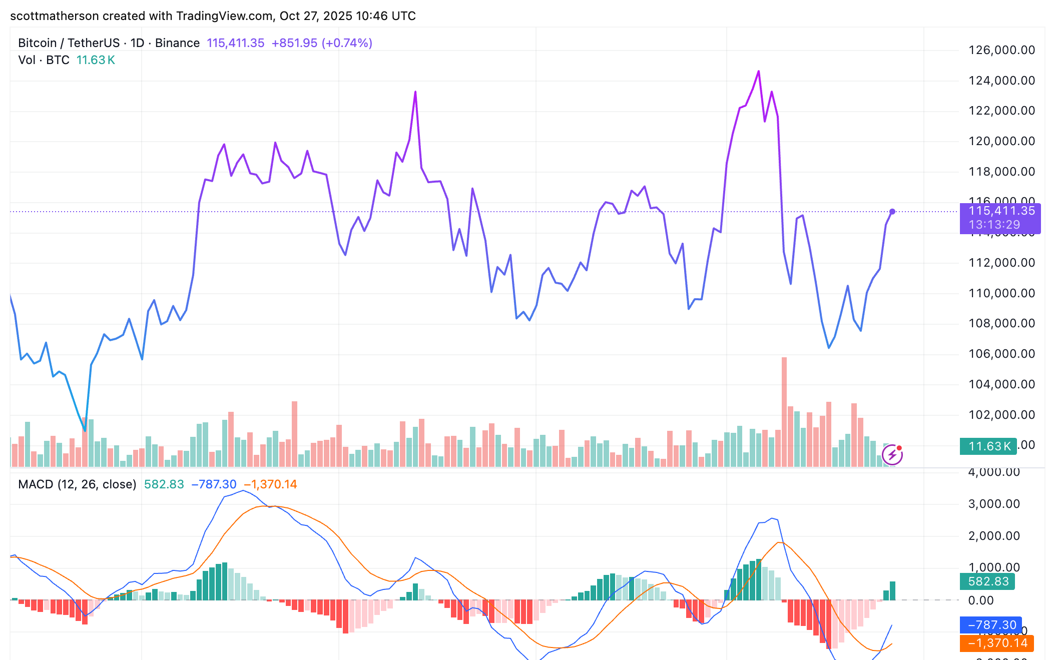 Đáng chú ý, Bitcoin đã thiết lập một ATH mới vào ngày 6 tháng 10 năm 2025, sau khi phá vỡ kỷ lục trước đó trên $124,000 và leo lên trên $126,000. Kể từ khi đạt được mức này, giá BTC đã giảm mạnh xuống $115,000. Biểu đồ kèm theo cho thấy thị trường đang phục hồi ổn định sau khi kiểm tra hỗ trợ gần $108,000, được đánh dấu là khu vực “phá vỡ cấu trúc thị trường”, với hành động giá tăng giá đang củng cố trên $109,000.